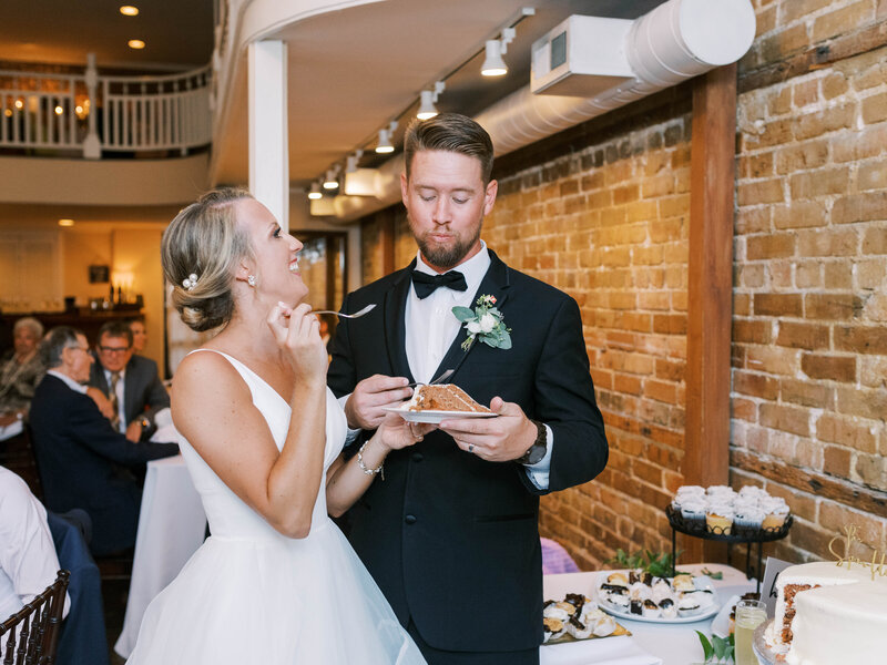 Cake cutting followed by bouquet toss