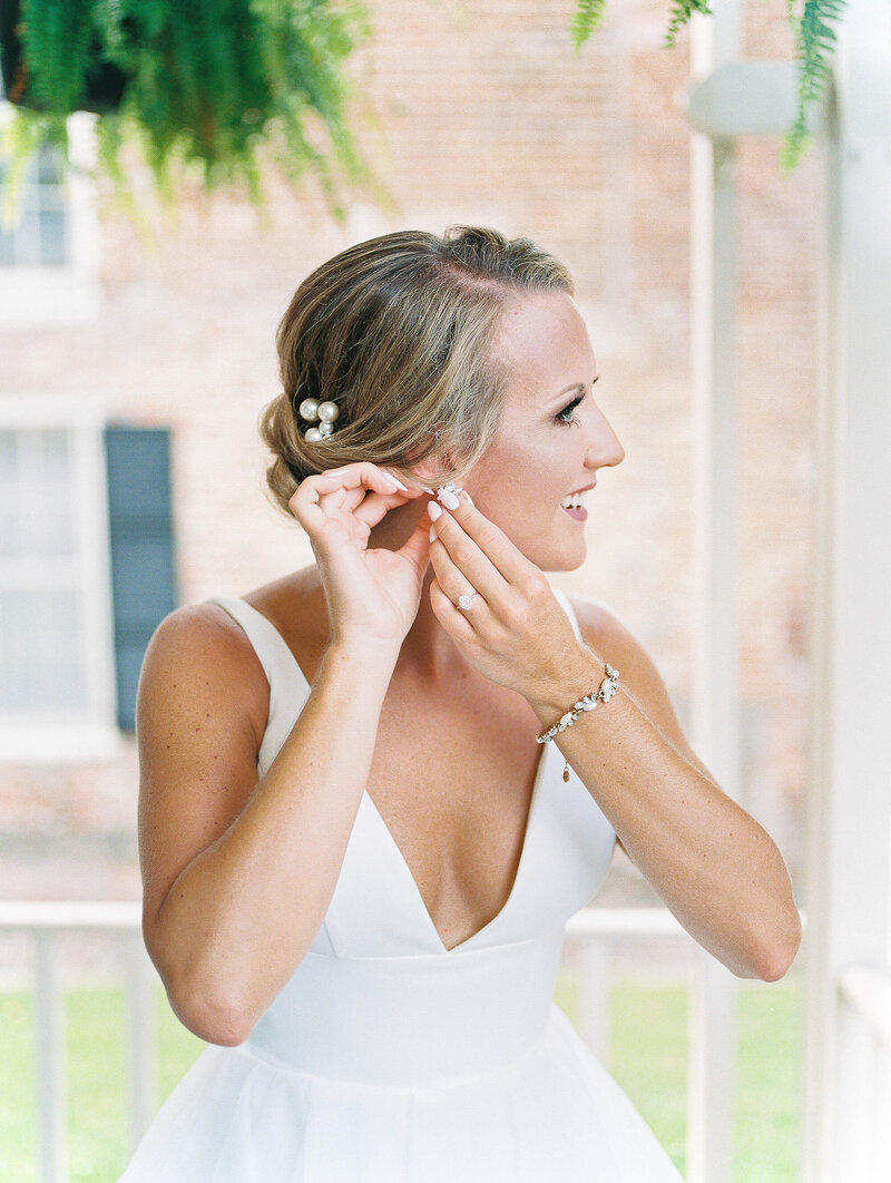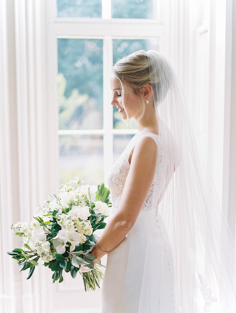 Many venues charge a fee for portrait sessions. Although inconvenient, the fee is often worth it in order to have access to the getting ready room and other venue services. We typically have to work with venues on scheduling, but I love to shoot bridal portraits in the late afternoon utilizing the softer afternoon light. However, if your venue has strict hours, I am happy to work with their allotted times. Make sure to bring your jewelry, veil and shoes to your bridal portrait session!