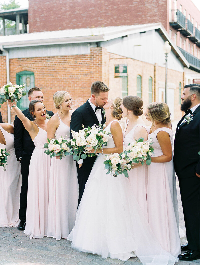 When there is no first look, the majority of the pictures have to be taken after the ceremony. Family pictures are generally done as soon as the ceremony ends because it’s the easiest time to round everyone up. Next up, is full bridal party portraits then Bride and Groom portraits. This generally runs into cocktail hour.